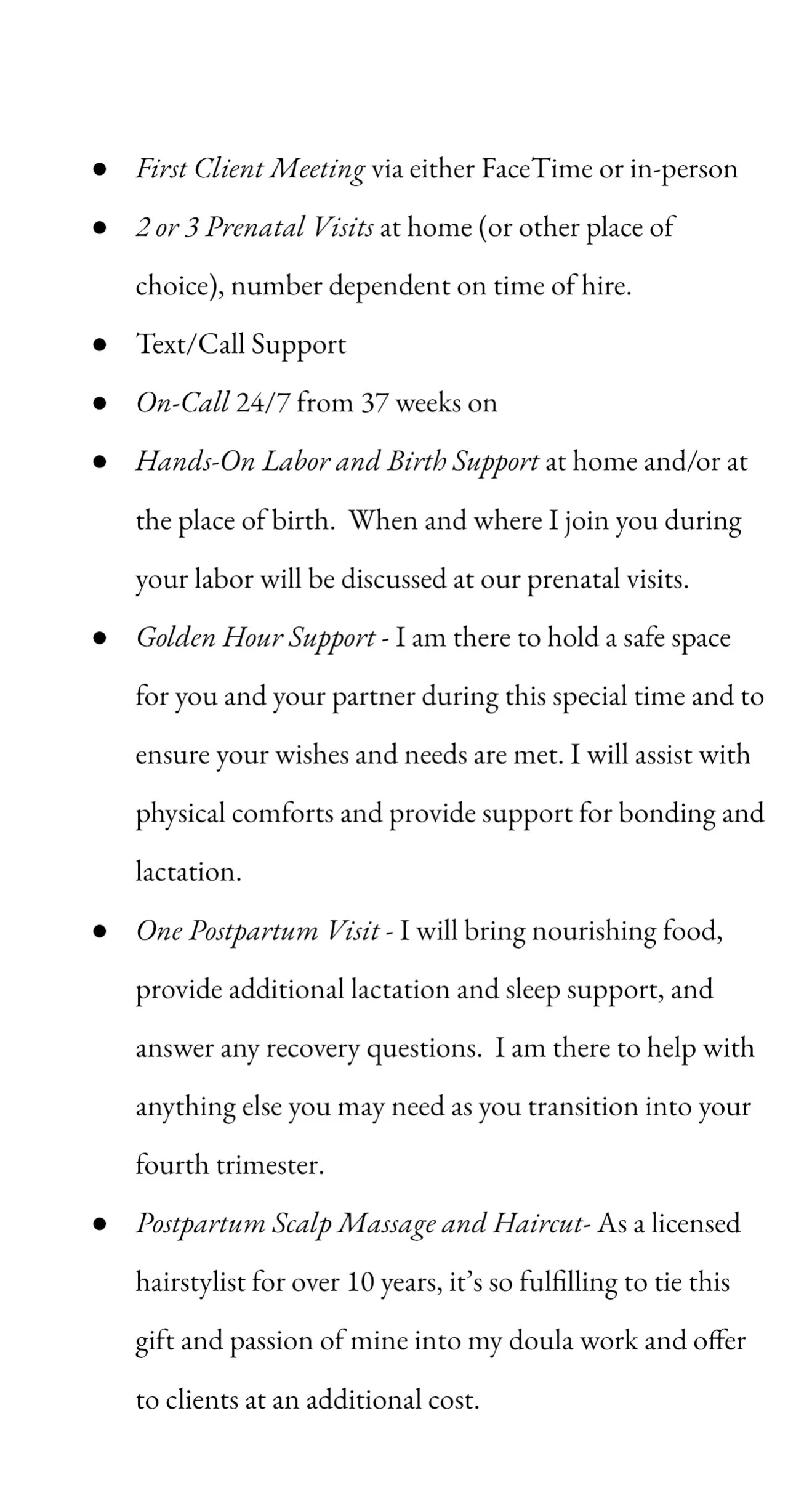 It would be an honor to help nurture and support you and your partner on your unique journey into parenthood. As your doula, I will be a loving source of support, knowledge, and guidance throughout your pregnancy and birth. I will listen to your wishes, help calm your fears, and see to it that you slow down, look inward, and tap into the intuitive power that you possess as a mother. Pregnancy and birth are so wonderfully unique to each woman, and however your experience unfolds, it is my wish that you and your partner feel safe and supported as you navigate your birthing landscape and welcome your baby earthside.